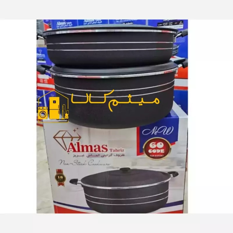 تابه و قابلمه گرانیتی الماس سایز 60 با پوشش گرانیت سه لایه نچسب و نسوز ضد خط و خش ارسال رایگان توجه داشته باشید قیمت درج شده هم قیمت تابه هست هم قابلمه جفت
