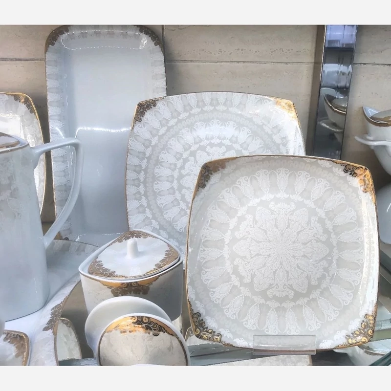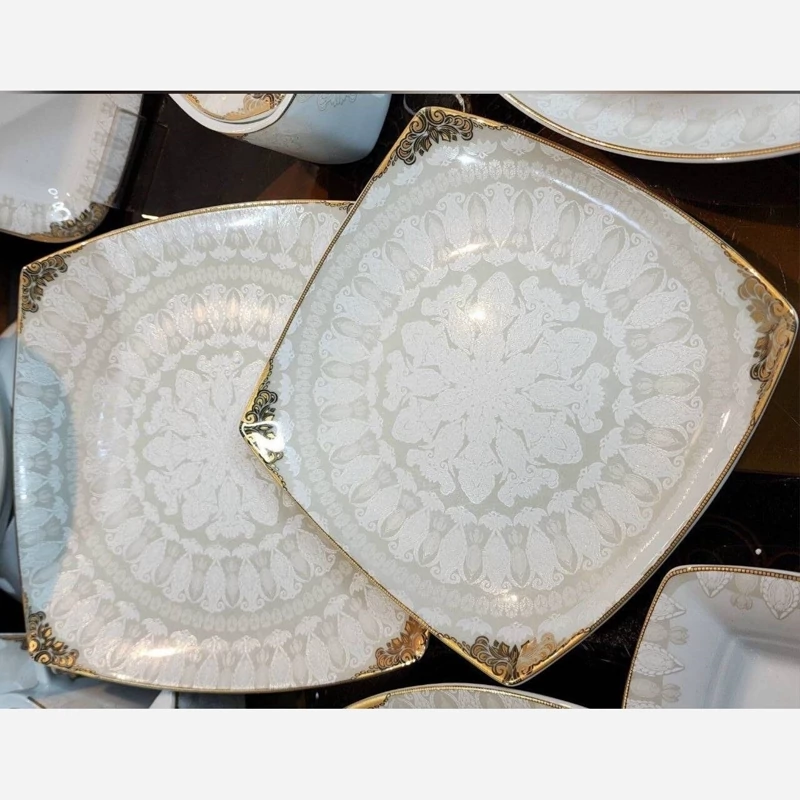 سرویس چینی پردیس طرح منچستر طلایی 105 پارچه (پس کرایه