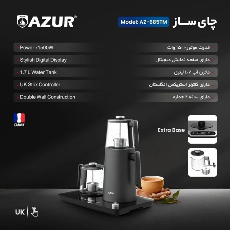 چایی ساز برند آزور AZUR مدل AZ_685TM نهتنها کارایی بالا، بلکه طراحی شیک و جذاب دارد، چایساز آزور AZUR میتواند بهترین گزینه برای شما باشد. این چایساز با ترکیب فناوری پیشرفته و امکانات کاربردی، تجربهای جدید و لذتبخش از تهیه چای و دمنوش را برایتان به ارمغان میآورد.