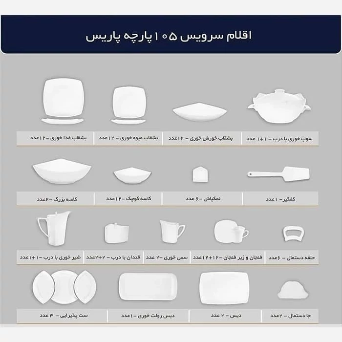 طراحی زیبا و منحصر به فردسرویس چینی پردیس 105 پارچه 12 نفره طرح دنیا طلایی